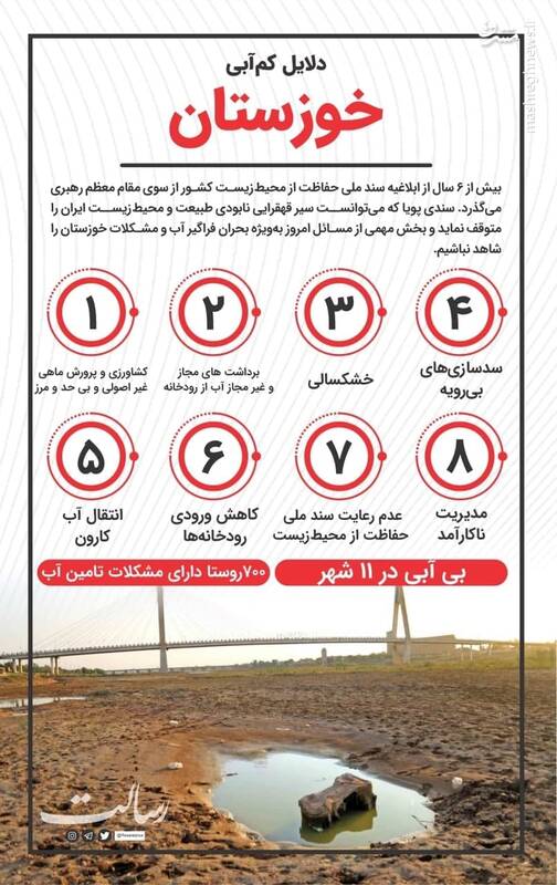قطعا این معضلات بزرگ آب، برق، آلودگی هوا، گرما و شرجی وحشتناک، گرانی و... هر انسان شریف و متعهدین را معترض و نگران می‌کند خصوصا که خاک این استان خود تامین کننده انرژی به صورت آب، برق، نفت و گاز است و جلگه حاصلخیزی که سرآمد کشاورزی کشور است، حال همه فرصت‌ها تبدیل به تهدید شده و مردم را عاصی کرده اند، لذا این مردم محق و مجاز به اعتراض گسترده هستند و باید دولت و سایر نهاد‌ها و سازمان‌ها در مقابل آن‌ها پاسخگو باشند.