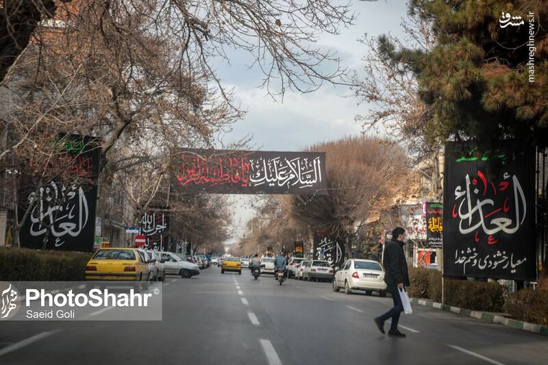 با فرارسیدن سالروز شهادت حضرت زهرا(س) شهر مشهد حال و هوای معنوی و عزاداری این ایام را به خود گرفته و در جای جای شهر پرچمهای عزای فاطمی نصب شده است.