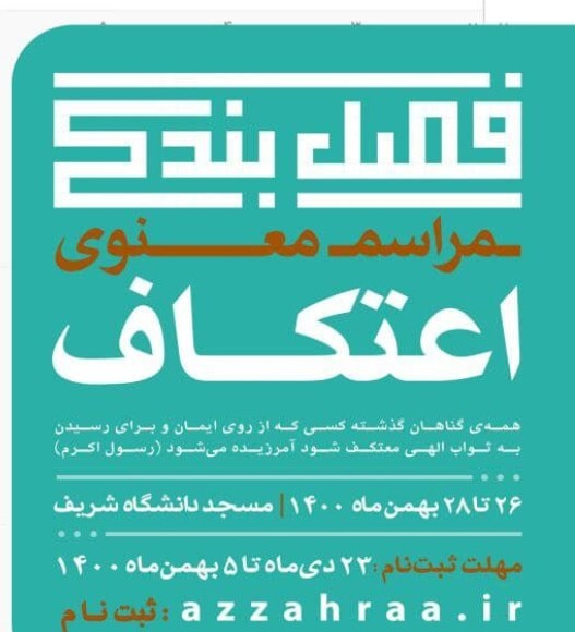 لازم به ذکر است، زمان برگزاری مراسم اعتکاف از ۲۵ لغایت ۲۸ بهمن ماه در مسجد دانشگاه امیر کبیر برگزار میگردد.