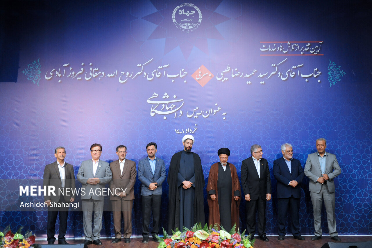 مراسم تکریم دکتر سید حمیدرضا طیبی رئیس سابق جهاد دانشگاهی و معارفه دکتر روحالله دهقانی فیروزآبادی رئیس جدید این نهاد، صبح امروز یکشنبه ۲۲ خرداد ماه ۱۴۰۱ در دانشگاه علم و فرهنگ جهاد دانشگاهی برگزار شد.