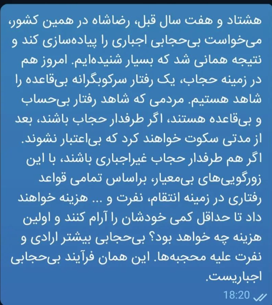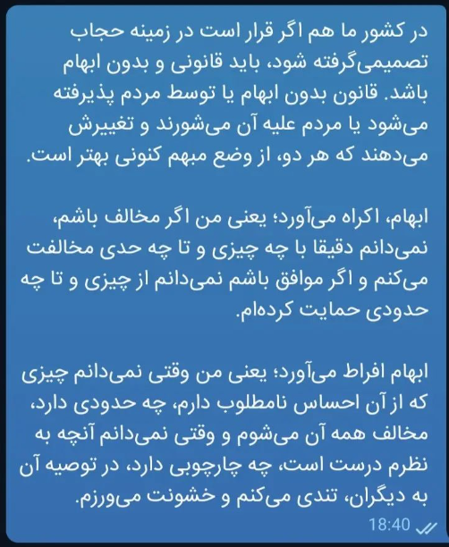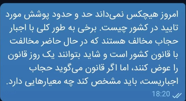 به نظر می‌آید، تصمیم‌گیران کشور نیز باید میزان سرمایه اجتماعی که می‌خواهند بر سر مساله حجاب قمار کنند را مشخص کنند.