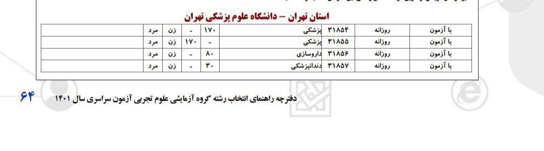 در ادامه مقایسه با مقایسه امسال با سال گذشته افزایش ظرفیت پذیرش در سه رشته پزشکی، دندان پزشکی و داروسازی شهر تهران را ملاحظه می کنید: