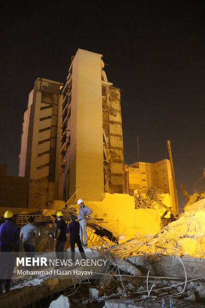 بخش عظیمی از باقیمانده سازه متروپل آبادان (سمت خیابان سعدی) عصر روز چهارشنبه فرو ریخت. با فروریختن بخشهای دیگری از سازه به جا مانده از برج متروپل آبادان، مأموران امدادی و خدمات رسانی در محل حاضر شدند.