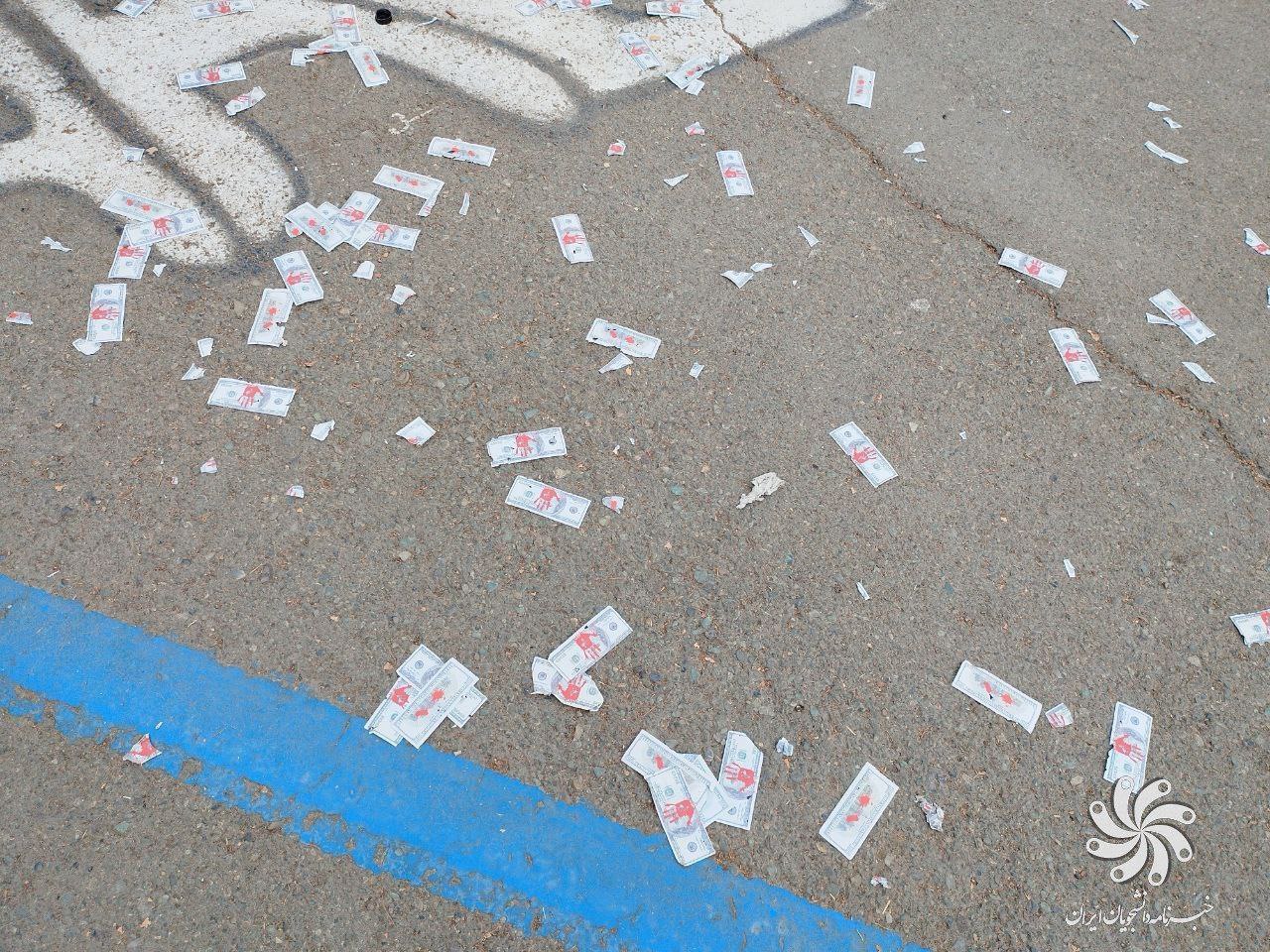 در ادامه دانشجویان عزاداری از این اقدام برخی دانشجونماها ناراحت شده و به نشانه اعتراض دلارهایی آغشته به خون شهدای حرم شاهچراغ شیراز را بر سر آن ها ریخته که مزدرانی با این دلارها خون مردم بی گناه را میریزند و عده دیگر ان ها را در رسانه ها تطهیر می کنند.