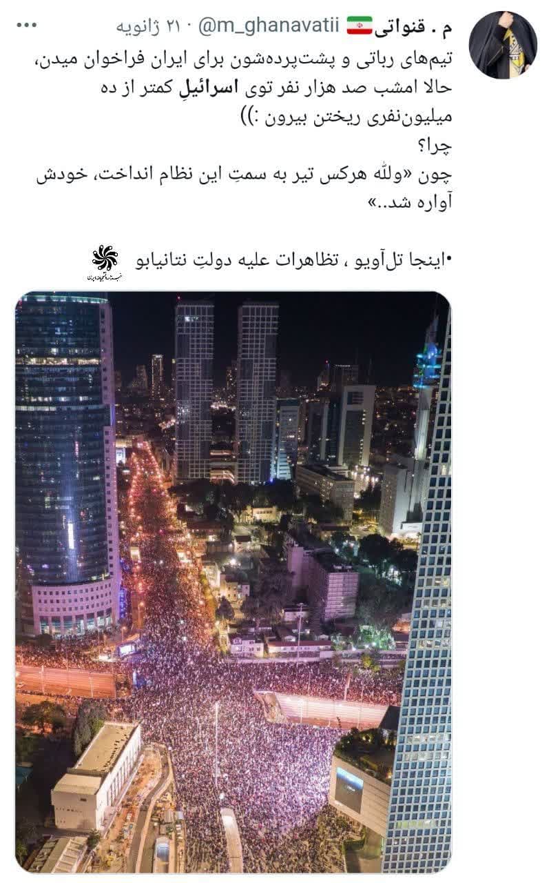 در ادامه واکنش کاربران فعال توئیتری را به این اعتراضات سراسری در اسرائیل می بینید: