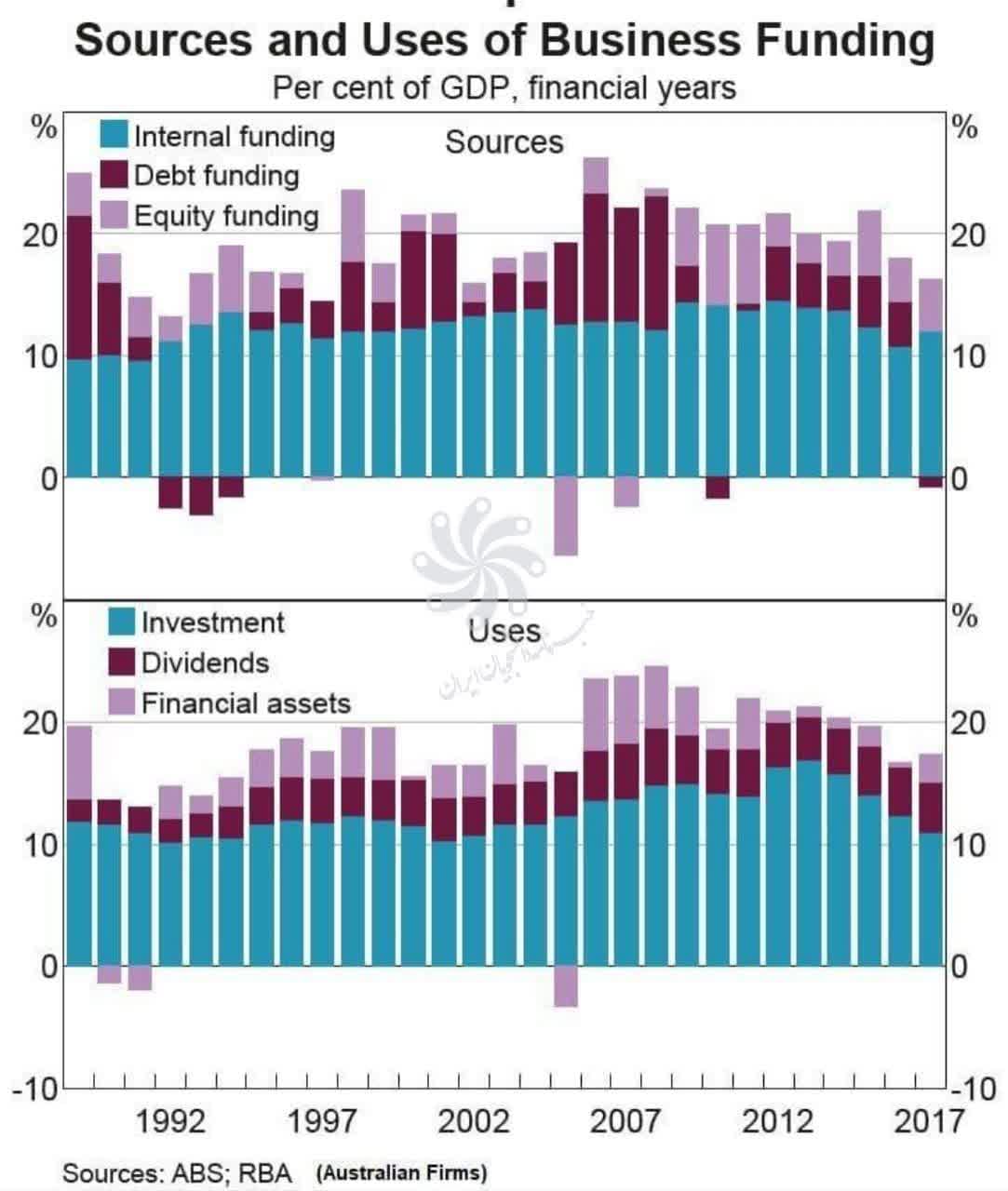 البته طبق آمار سازمان بورس در سال 1399 کل صنایع ،پتروشیمی ها و معدنی ها به ترتیب58، 88 و64درصد سود را تقسیم کردند. این یعنی:"فقدان برنامه توسعه عمودی و خلق ارزش افزوده با استفاده از منابع مالی درونزا". این در صورتی است که در سایر کشورهای جهاد سود تقسیمی کمترین سهم را در مصارف دراد. برای مثال در کشور استرالیا سودتقسیمی کمترین سهم در مصارف و منابع درونزا بیشترین سهم در منابع شرکتی را دارد.