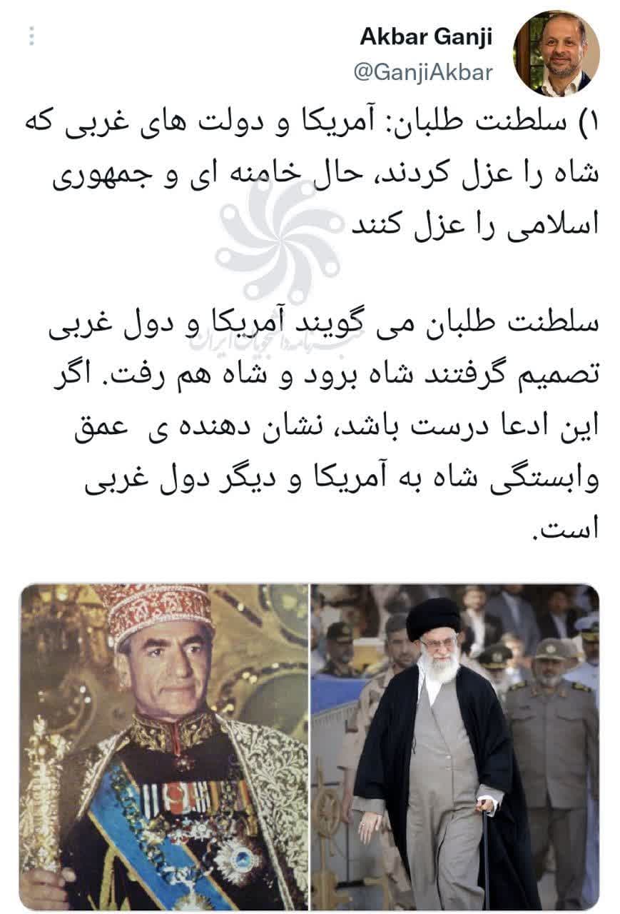 سلطنت طلبان: آمریکا و دولت های غربی که شاه را عزل کردند، حال {آیت الله} خامنه ای و جمهوری اسلامی را عزل کنند.