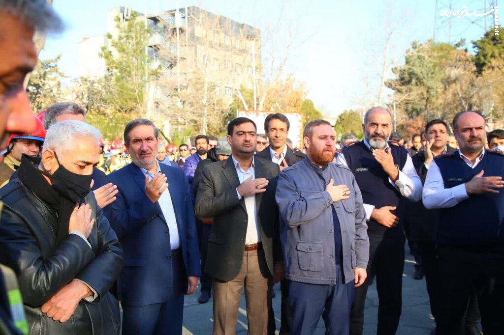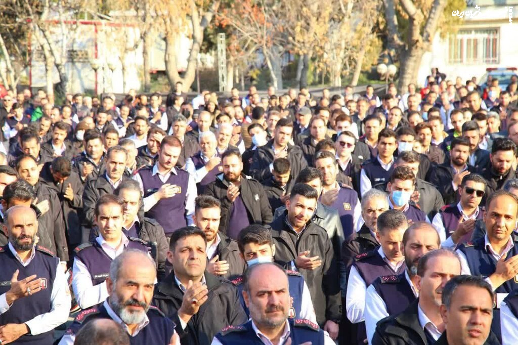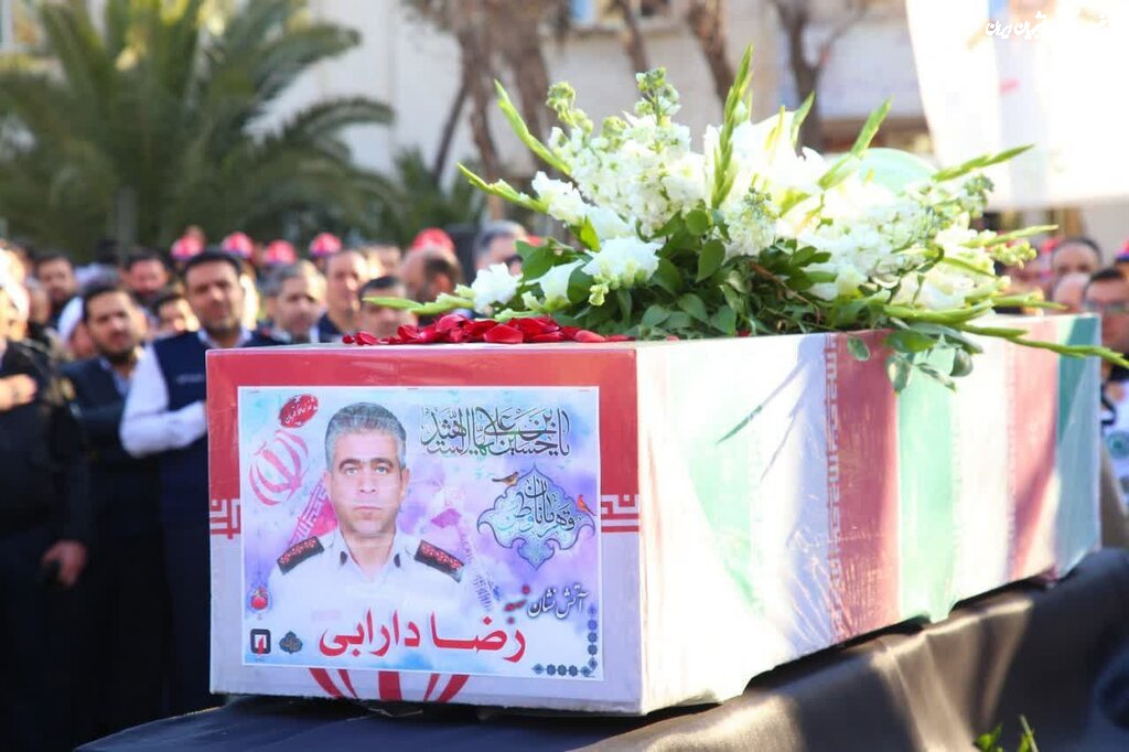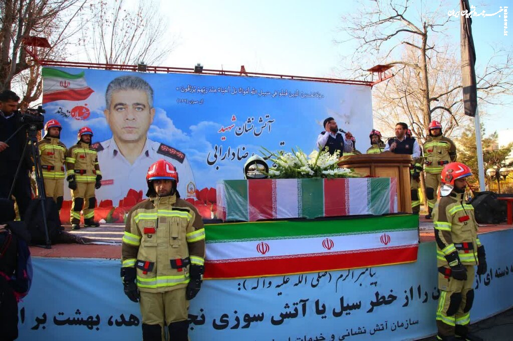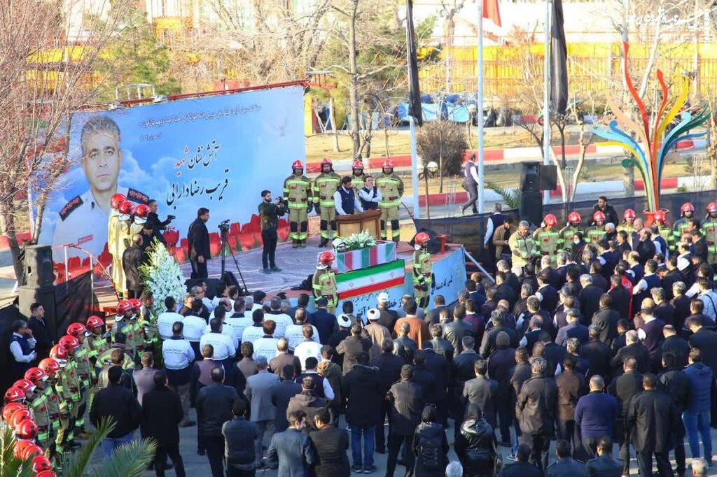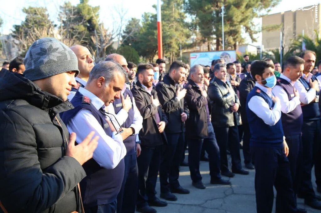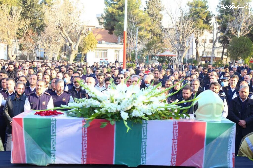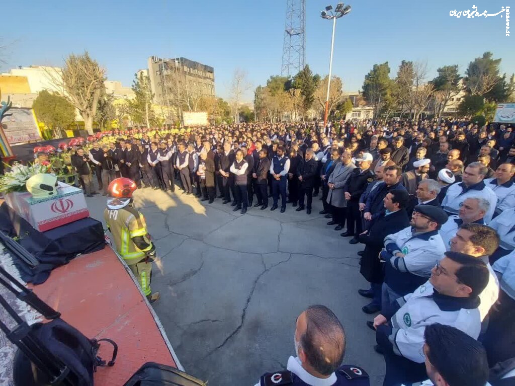 مراسم بدرقه پیکر آتش نشان شهید "قریب رضا دارابی" از سازمان آتش نشانی تهران به سمت امام زاده علی اکبر در محله چیذر