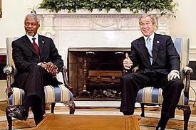کوفی عنان، دبیرکل سابق در کنار بوش رئیسجمهور سابق