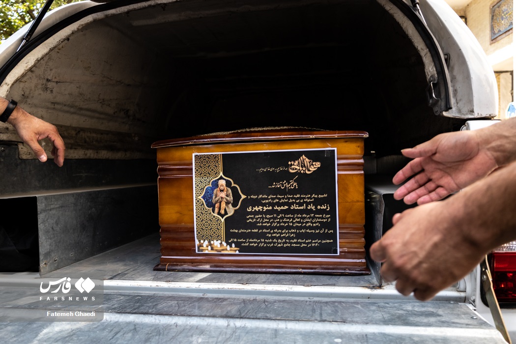 مراسم تشییع پیکر زندهیاد حمید منوچهری پیشکسوت گویندگی رادیو و دوبله با حضور جمعی از هنرمندان رادیو، سینما و تلویزیون صبح روز جمعه ۱۳ مرداد ۱۴۰۲ مقابل میدان رادیو ارگ تهران برگزار شد.