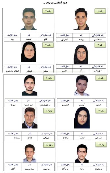 نفرات برتر کنکور سراسری ۱۴۰۲ در گروه علوم تجربی