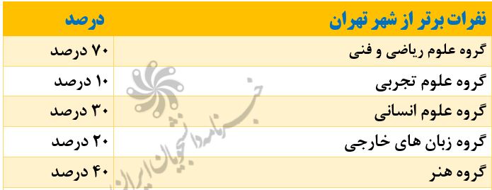 درصد قبولی داوطلبان از شهر تهران را در جدول زیر مشاهده میکنید: