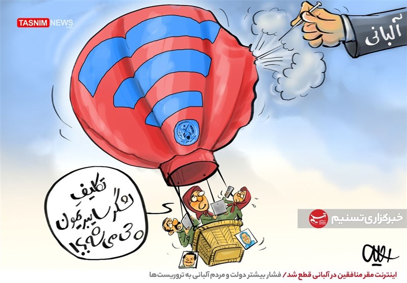 کاریکاتور|  اینترنت مقر منافقین در آلبانی قطع شد