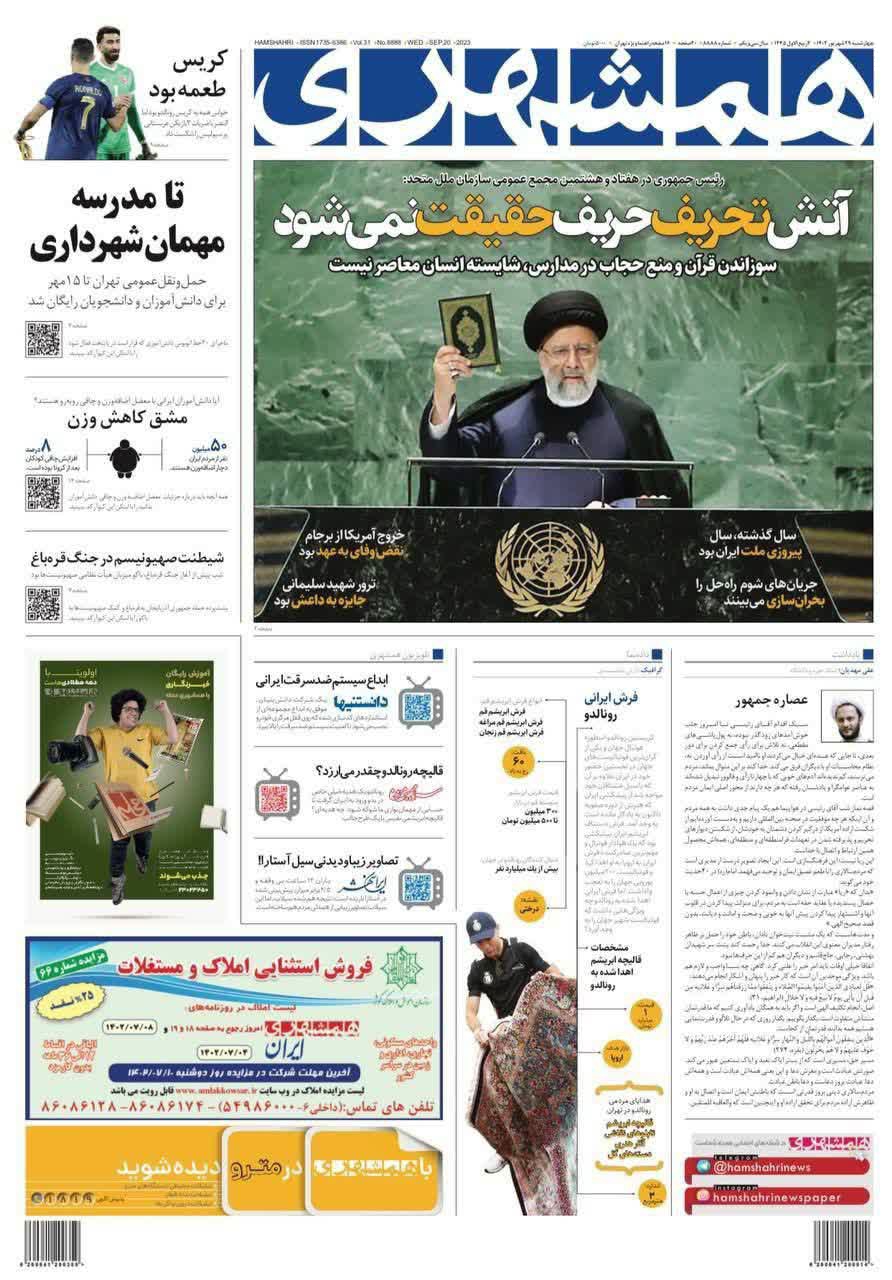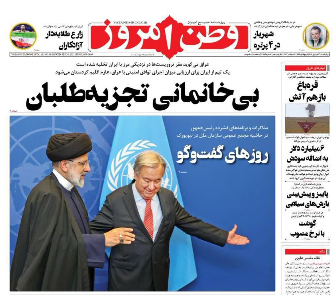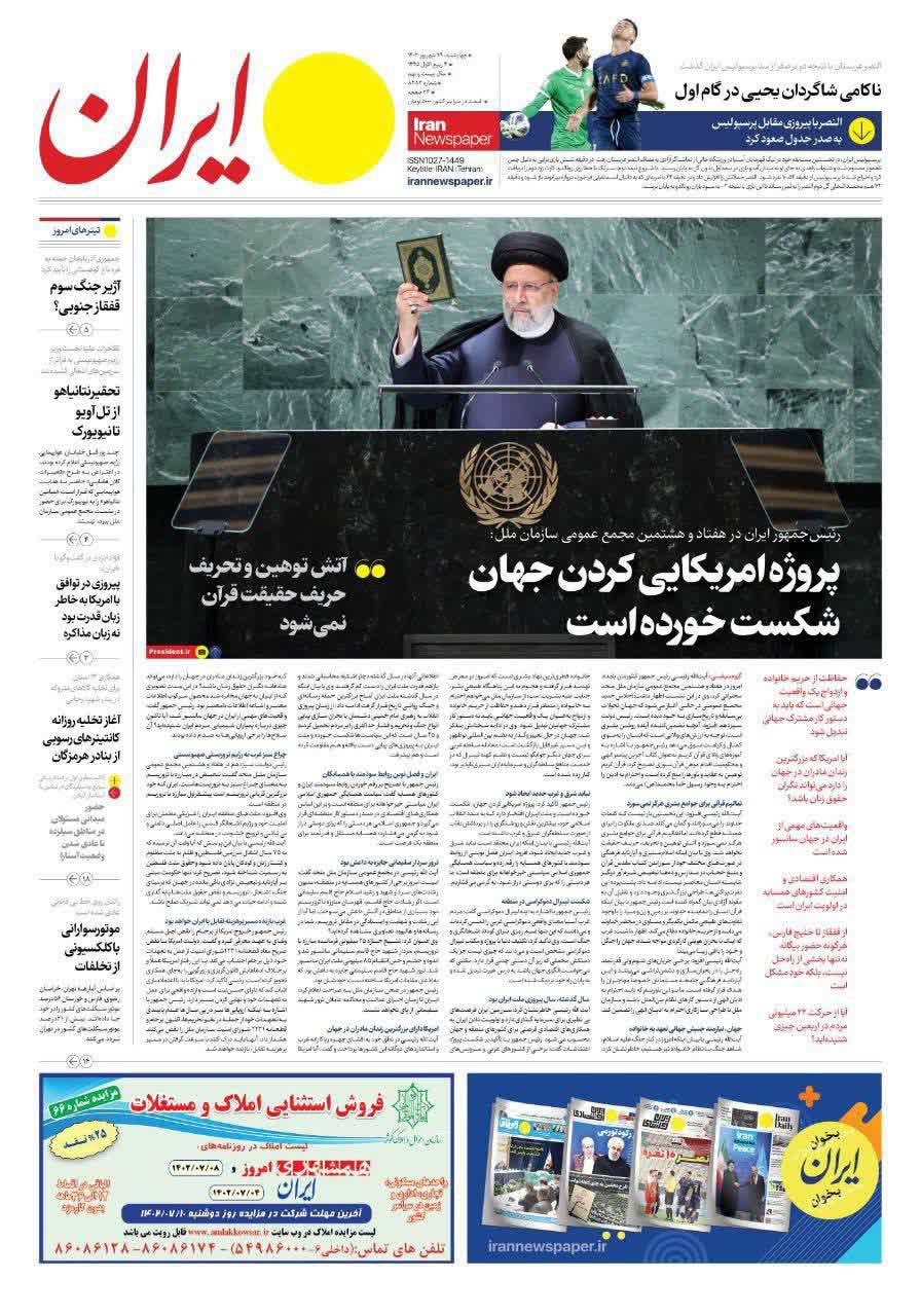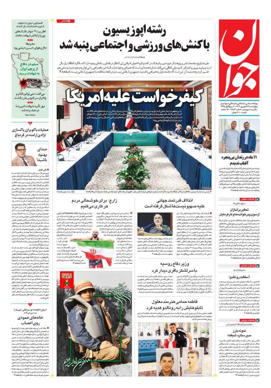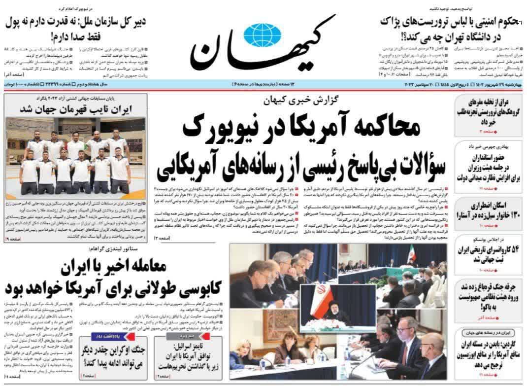 کیفرخواست علیه امریکا، بی خانمانی تجزیه طلبان، محاکمه آمریکا در نیویورک سؤالات بی‌پاسخ رئیسی از رسانه‌های آمریکایی، موضوعات مورد توجه روزنامه‌های چهارشنبه ۲۹ شهریور است.