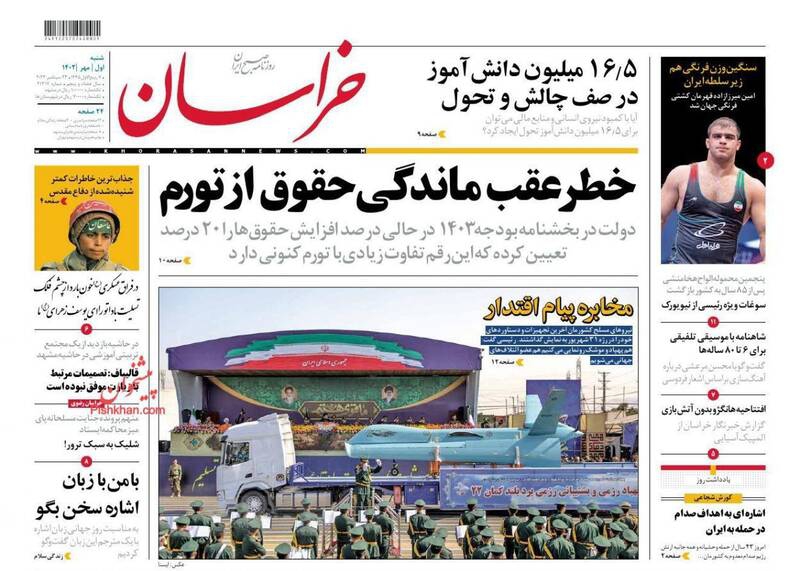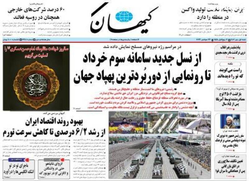 از نسل جدید سامانه سوم خرداد تا رونمایی از دوربردترین پهپاد جهان، طلای ۲۴ عیار برای ایران و سبقت بورس از بانک موضوعات مورد توجه روزنامه‌های شنبه یکم مهر ماه ۱۴۰۲ است.