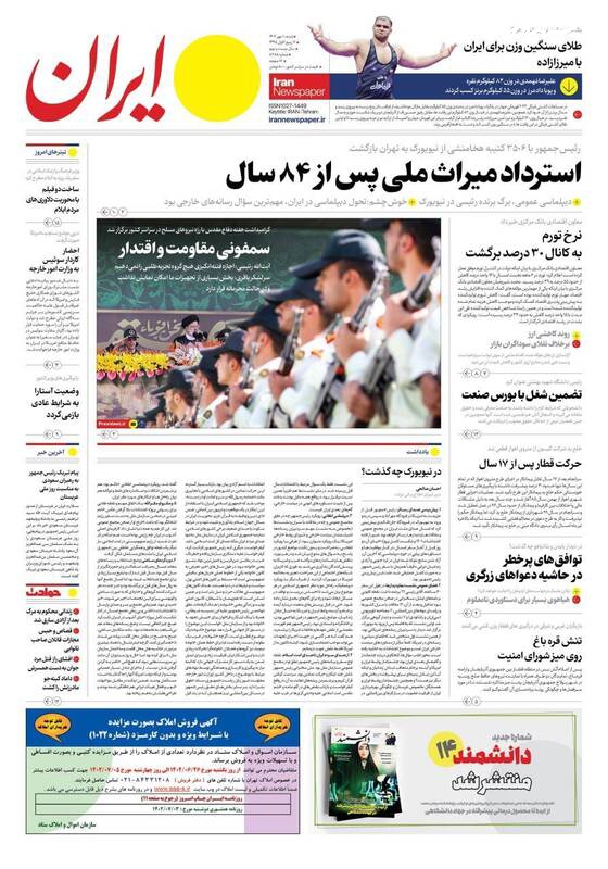 صفحه نخست روزنامه‌های شنبه ۱ مهر ماه