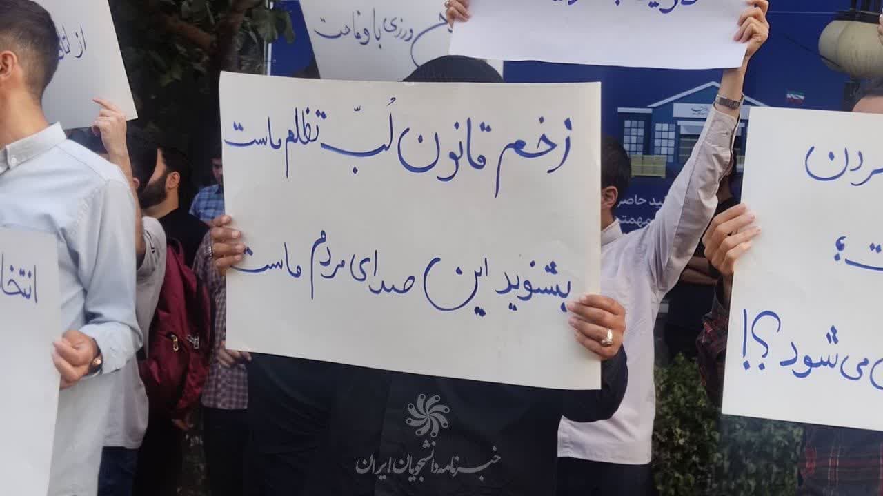 معترضین در این تجمع با در دست داشتن تعدادی اعلامیه و سر دادن شعارهایی اعتراض خود را به انتخابات غیرقانونی اتاق بازرگانی ایران نشان دادند. دانشجویان با شعار دادن "لابیگری دولت، خیانت است به ملت"، "فساد اقتصادی، مقتل انقلاب" و "انتخابات غیرقانونی اتاق بازرگانی باید ابطال گردد" اعتراض خودشان را نشان دادند.