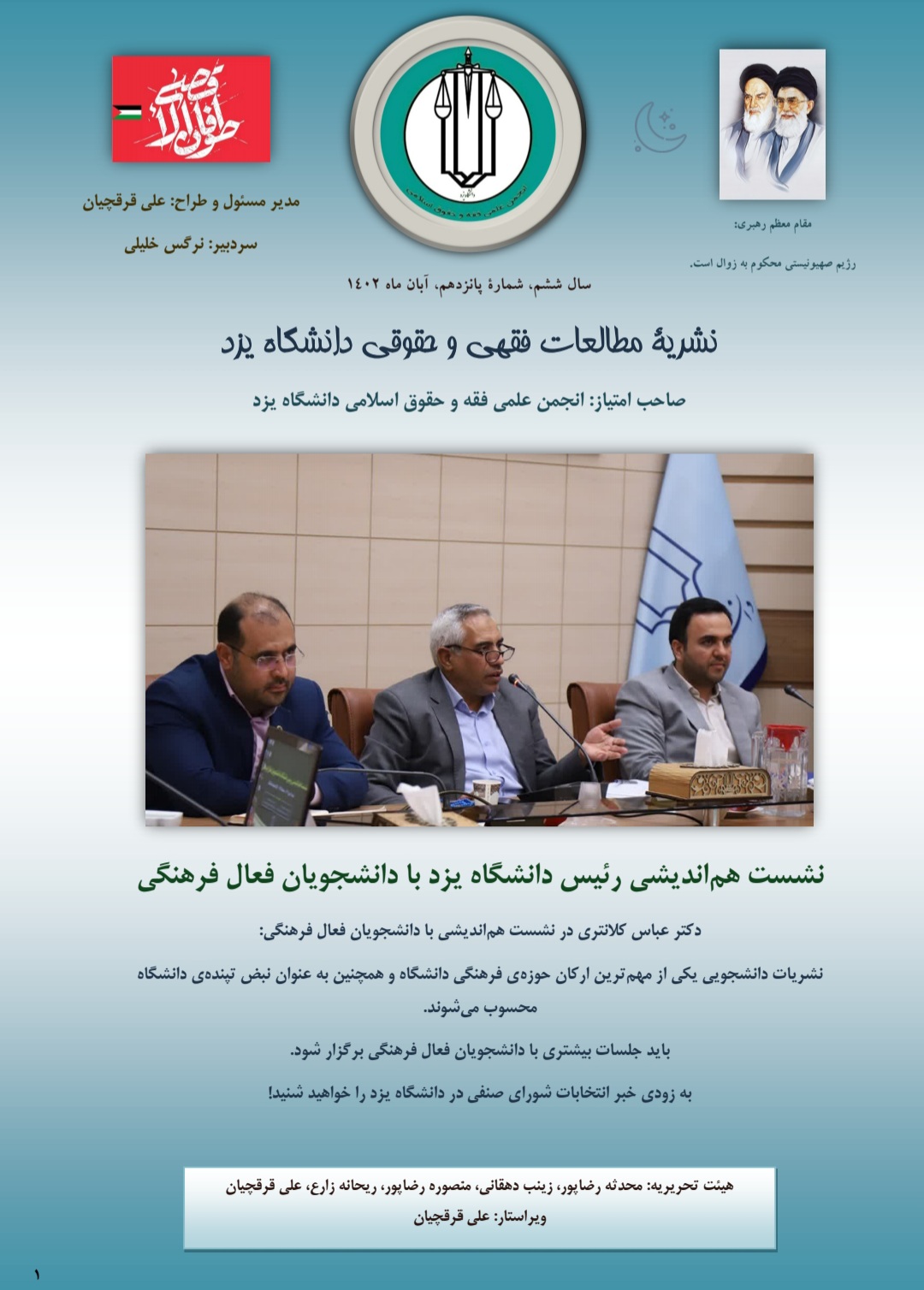 شماره جدید نشریه دانشجویی "مطالعات فقهی و حقوقی دانشگاه یزد" منتشر شد.