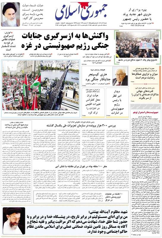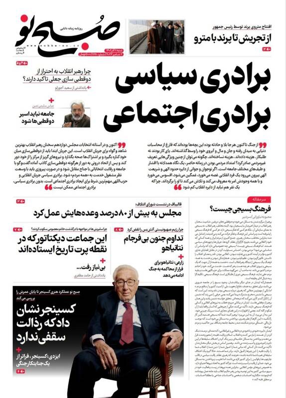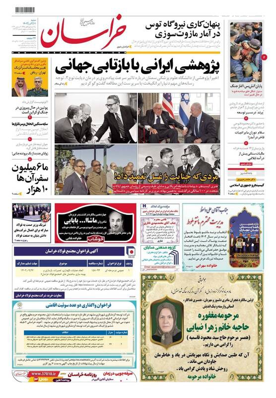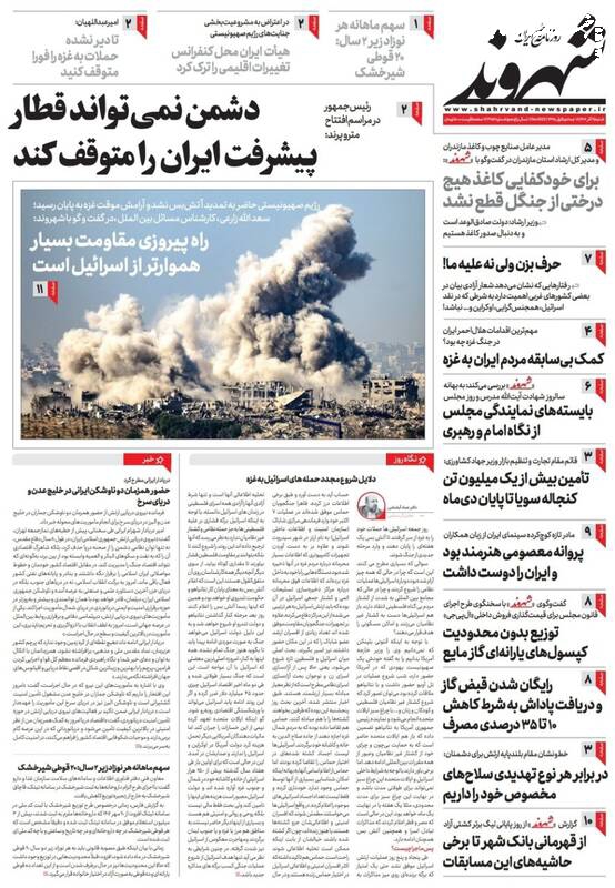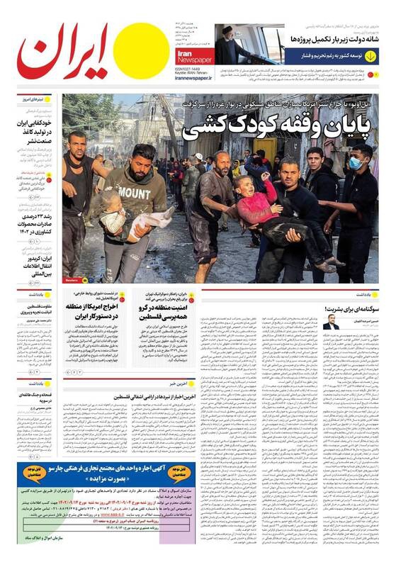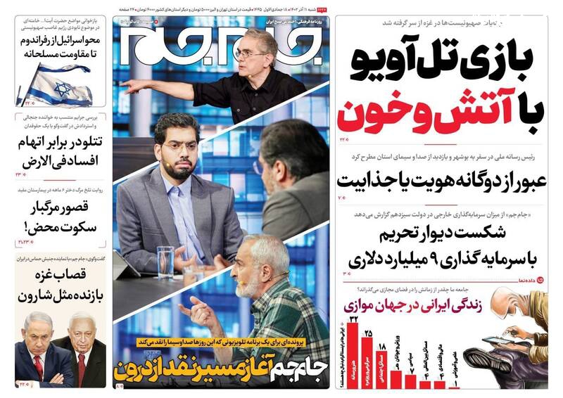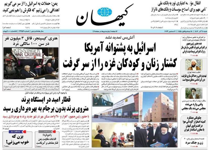 اسرائیل به پشتوانه آمریکا کشتار زنان و کودان غزه را از سر گرفت، لبخند پرند، بازی تلآویو با آتش و خون، هوش سیاه مکر و جنایت، راویان مظلوم فلسطین و... تیتر برخی روزنامههای شنبه ۱۱ آذر ۱۴۰۲ است.