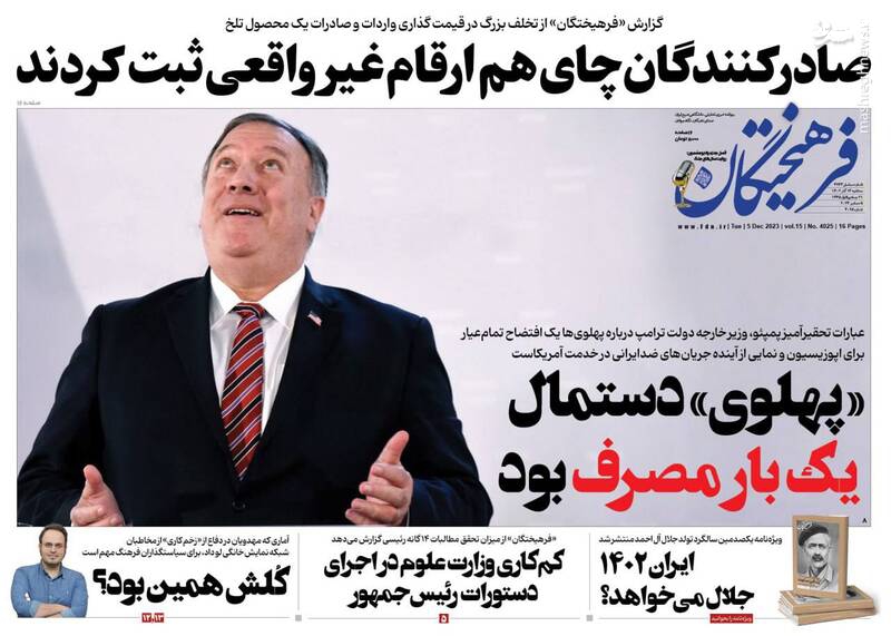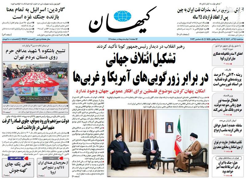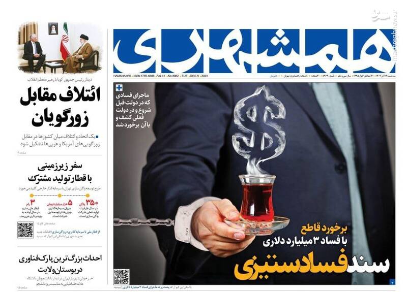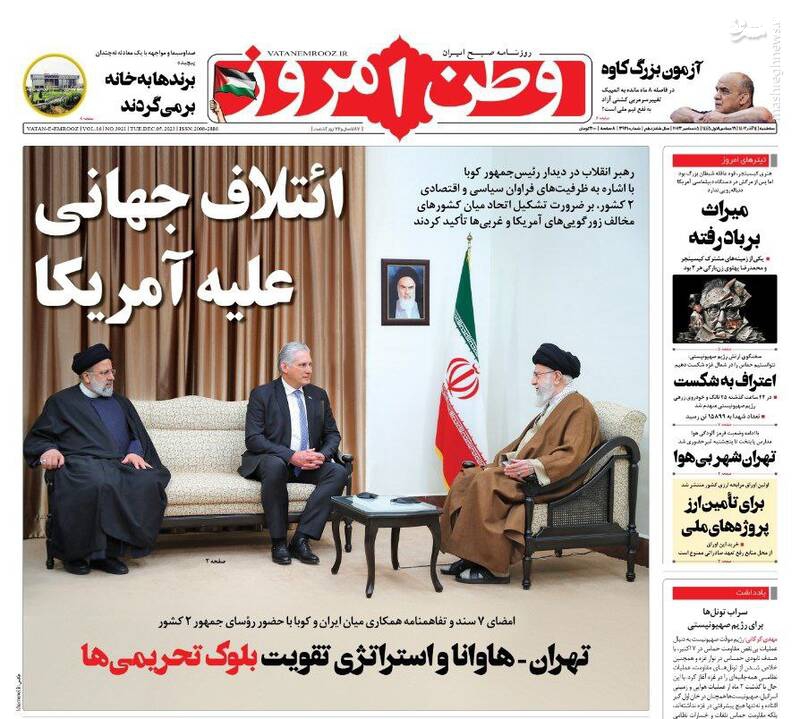 "پهلوی" دستمال یک بار مصرف بود، تشکیل ائتلاف جهانی در برابر زورگوییهای آمریکا و غربیها، ضرورت تشکیل ائتلاف ضدآمریکایی، تیتر برخی روزنامههای سهشنبه ۱۴ آذر ۱۴۰۲ است.