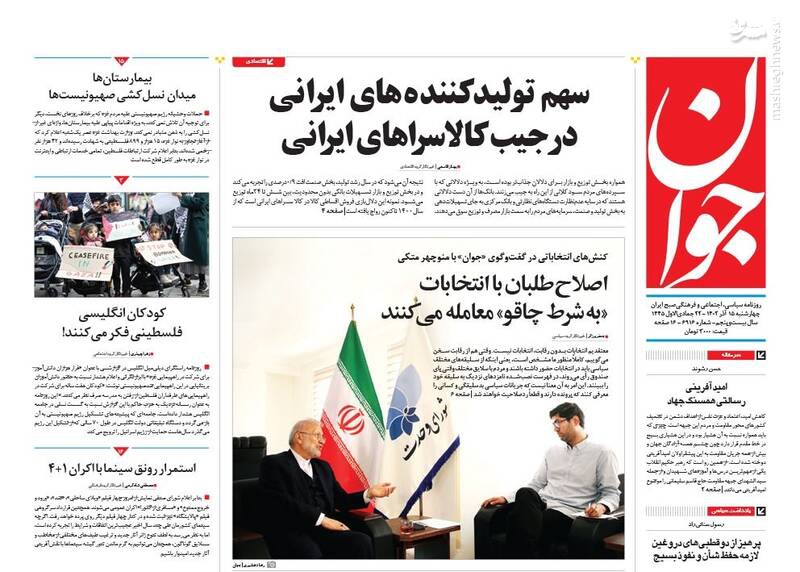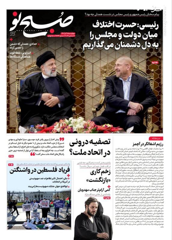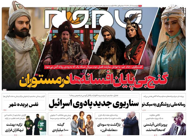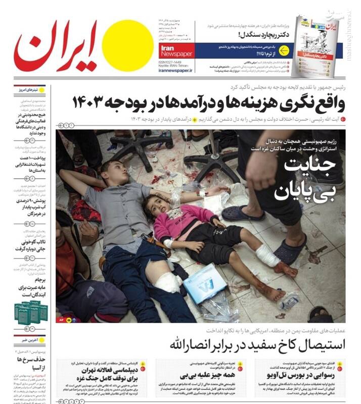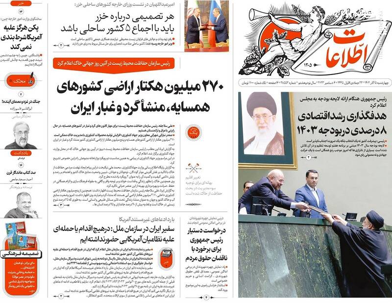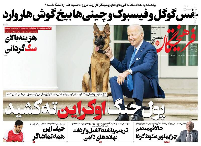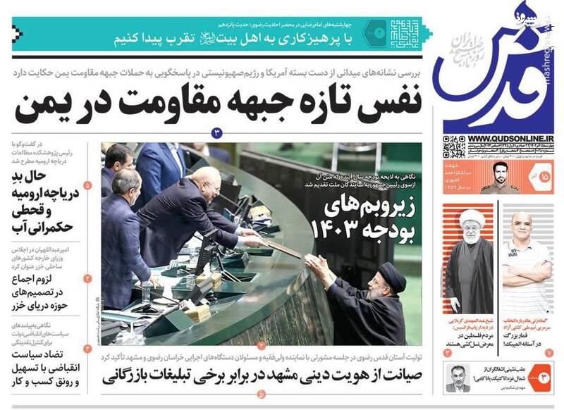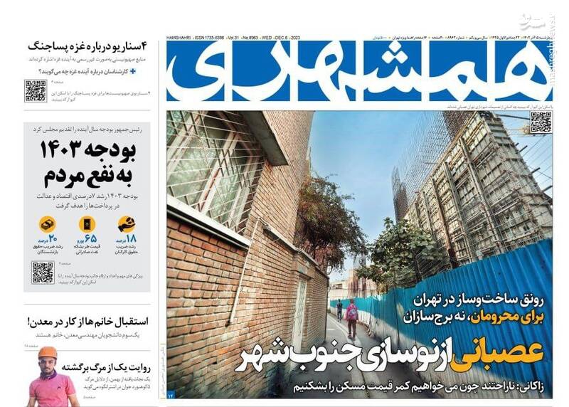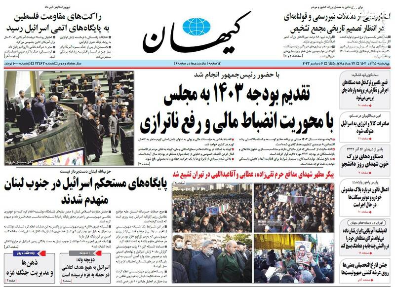 پول جنگ اوکراین ته کشید، تقدیم بودجه ۱۴۰۳ به مجلس با محوریت انضباط مالی و رفع ناترازی، اصلاحطلبان با انتخابات «به شرط چاقو» معامله میکنند، تیتر برخی روزنامههای چهارشنبه ۱۵ آذر ۱۴۰۲ است.