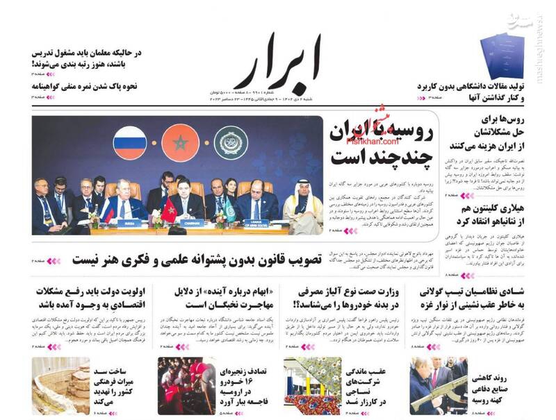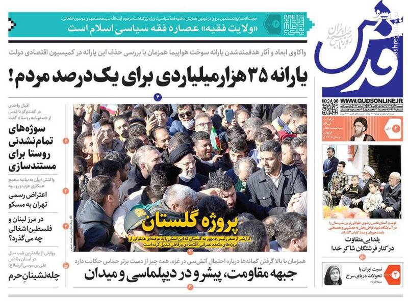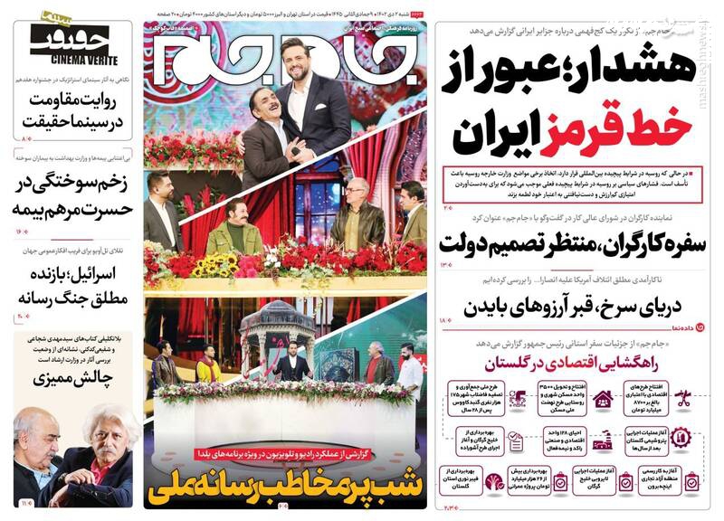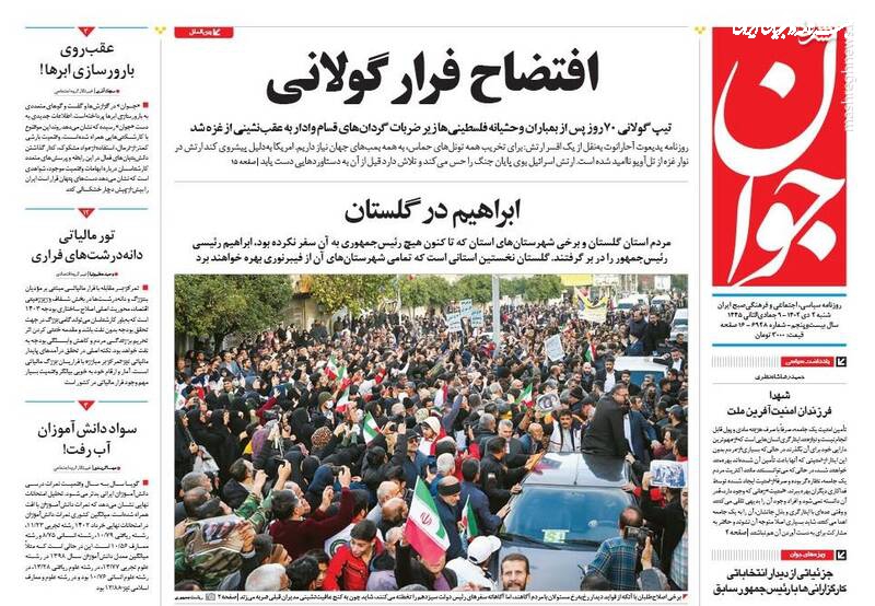 هشدار ایران به روسیه؛ تعارف نداریم، غرق خون، استقبال گرم و باشکوه از رئیسی در گلستان، افتضاح فرار گولانی، یلدای دولت در گلستان، تیتر برخی روزنامههای شنبه دوم دی ماه است.