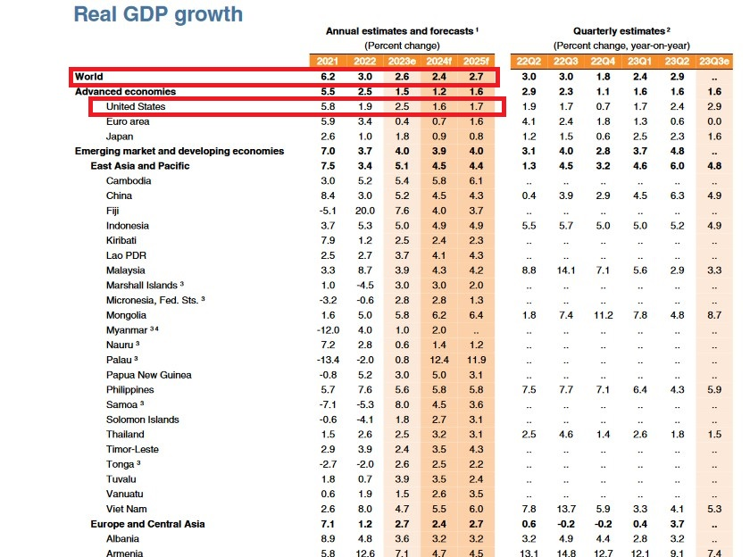 رشد اقتصادی جهان در این سال ۲.۶ درصد برآورده شده و برای سال ۲۰۲۴ نیز ۲.۴ درصد پیشبینی شده است.