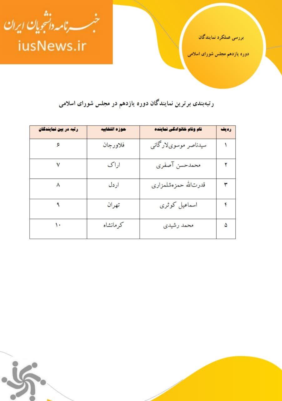 شاخص عملکرد: رتبه 10 در بین نمایندگان