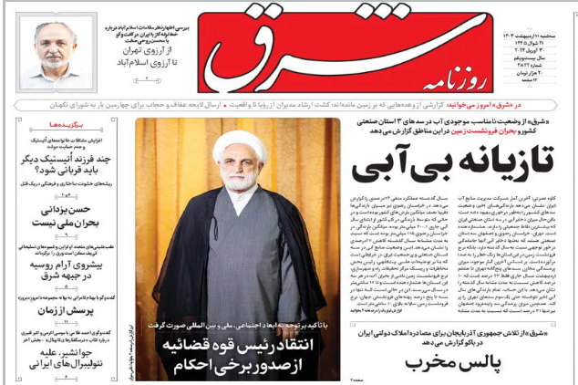 شرق صفحه اول خود را اینگونه نوشت: تازیانه بی آبی