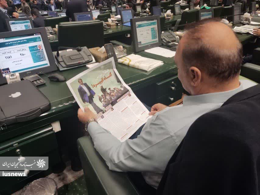 ماهنامه خبرنامه کاغذی دانشجویان ایران به مناسبت استیضاح همتی، وزیر اقتصاد منتشر شد و در صحن علنی مجلس بین نمایندگان پخش شد.