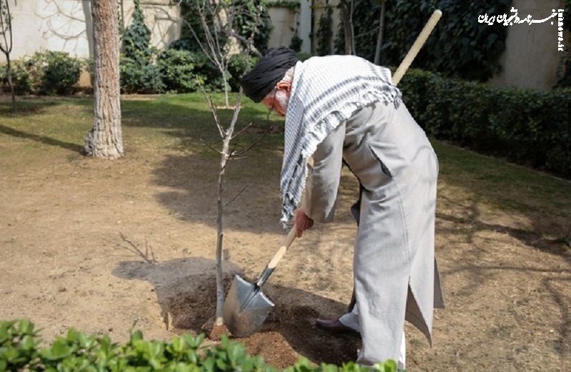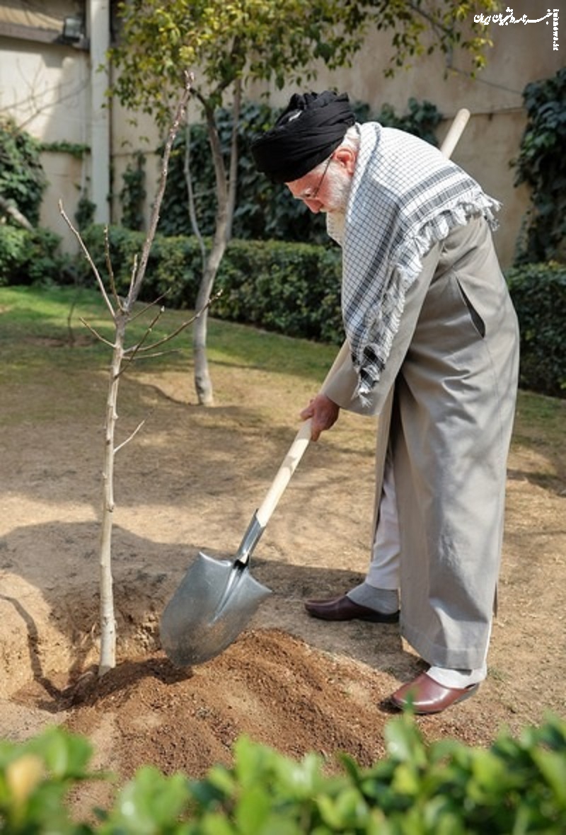 حضرت آیتالله خامنهای رهبر انقلاب اسلامی در هفته منابع طبیعی و همزمان با روز درختکاری صبح امروز چهارشنبه، سه اصله نهال کاشتند.