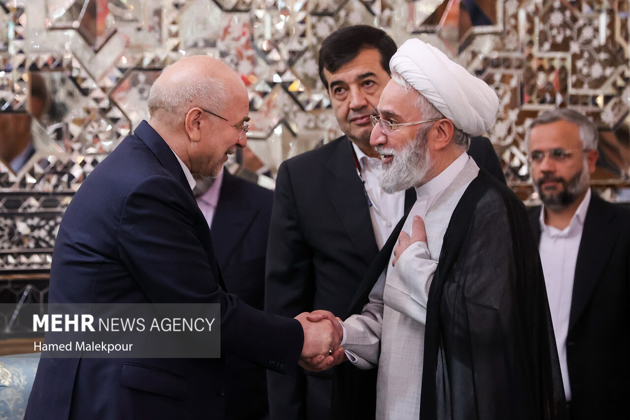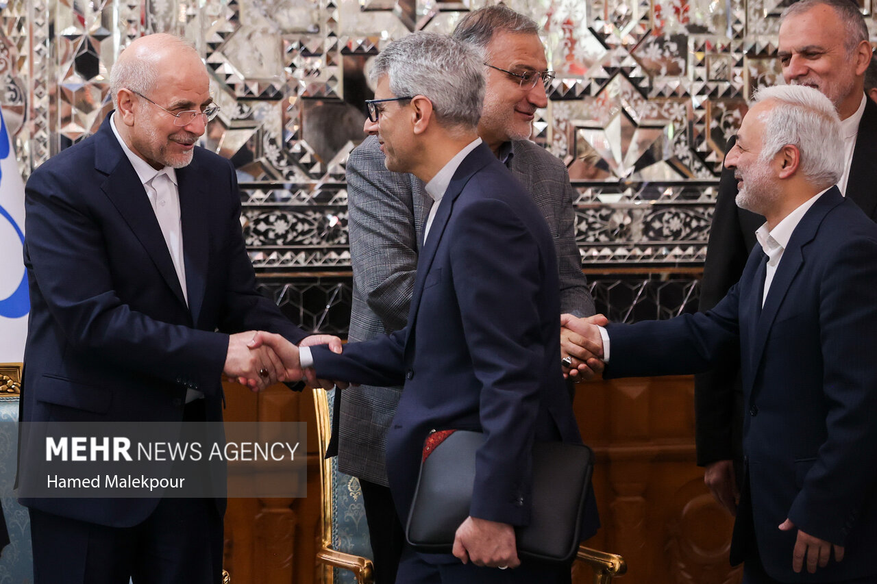 اعضای هیئت دولت، وزرا، مسئولان دستگاههای اجرایی و قضائی، رؤسای بانکها، استانداران و نمایندگان فعلی و ادوار مجلس شورای اسلامی صبح امروز شنبه ۱۶ فروردین ۱۴۰۴ به مناسبت آغاز سال جدید با محمدباقر قالیباف رئیس مجلس شورای اسلامی دیدار و گفتوگو کردند.