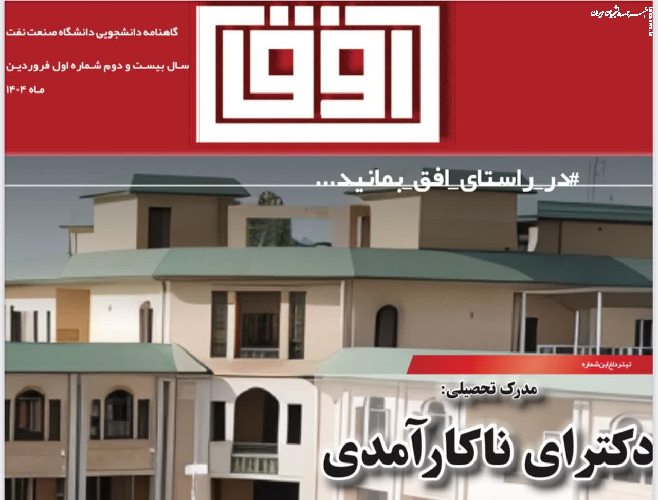 در اولین شماره نشریه دانشجویی «افق» دانشگاه صنعت نفت میخوانید: