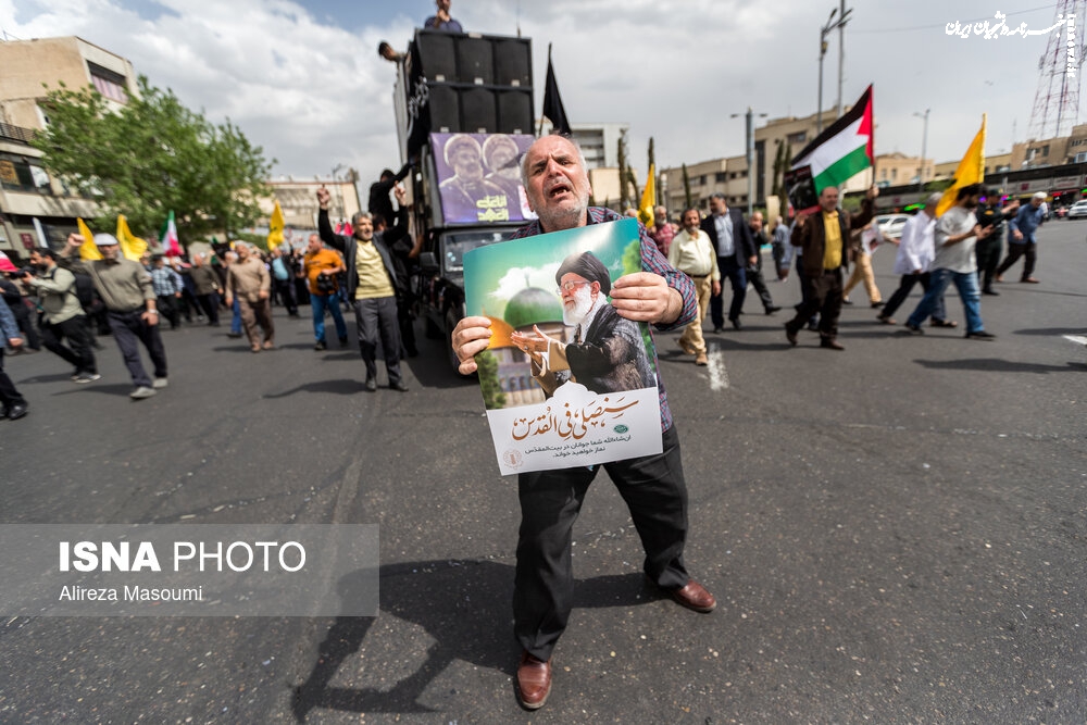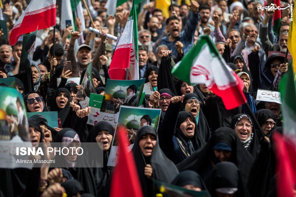 نمازگزاران تهرانی، جمعه ۲۲ فروردین ۱۴۰۴ بعد از اقامه نماز جمعه در راهپیمایی «جمعه‌های خشم»، با اعلام حمایت از مردم مظلوم فلسطین، انزجار خود را از جنایات رژیم صهیونیستی اعلام کردند.