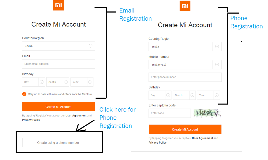 درصورتیکه قبلا حساب Mi نساختید، با ایمیل یا شماره تلفنتان یک حساب جدید بسازید. درغیراینصورت، کافیاست نام کاربری و رمز ورودتان را وارد کنید.