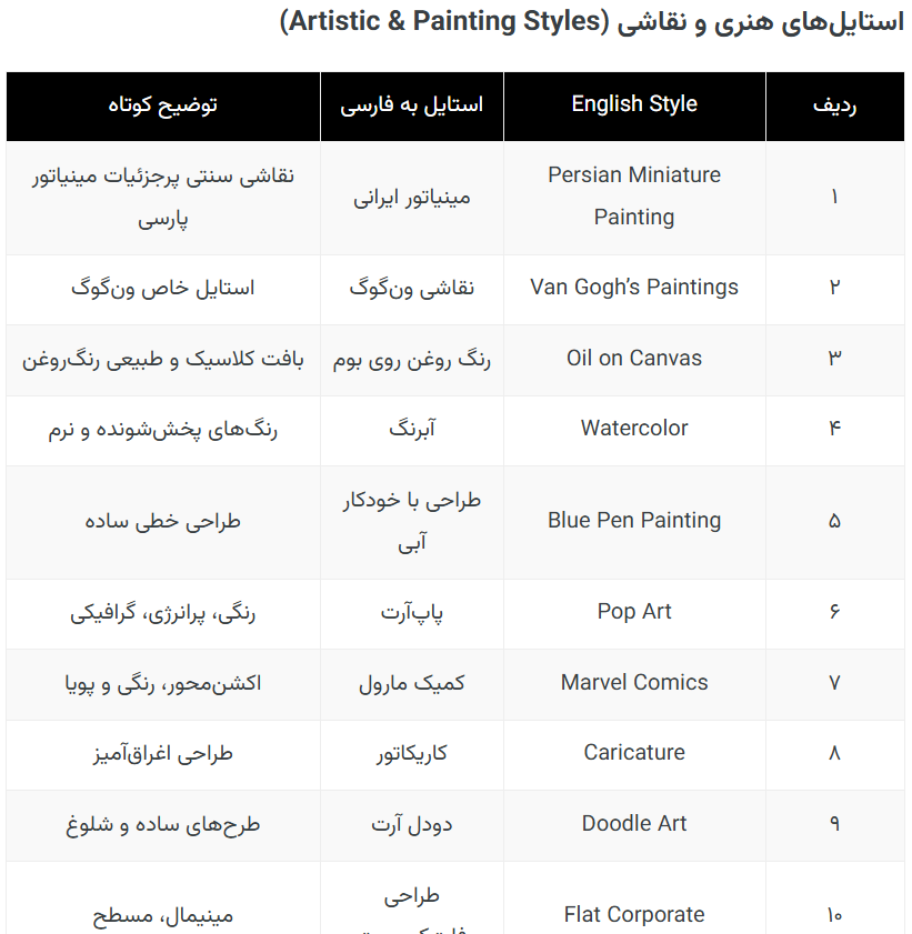 تمام استایل های پرطرفدار برای ساخت تصویر با هوش مصنوعی
