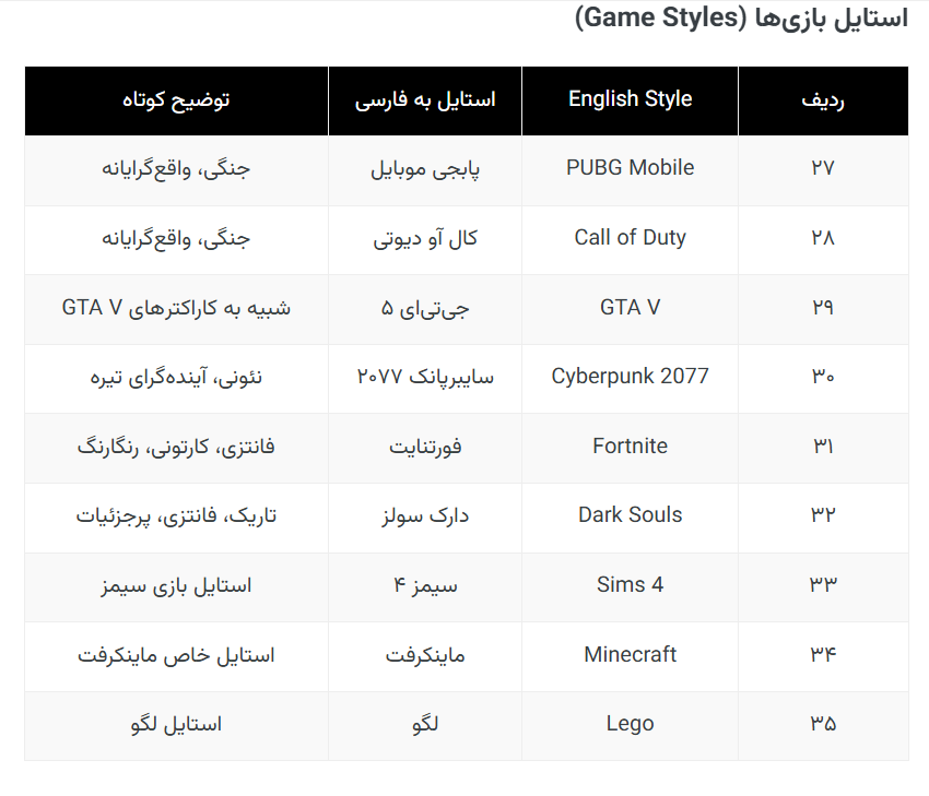 در ادامه، تعدادی از استایلهای پرکاربرد و محبوب را معرفی کردهایم که در ساخت تصاویر عادی و ساخت عکس پروفایل با هوش مصنوعی، نتایج منحصربهفردی ایجاد میکنند.