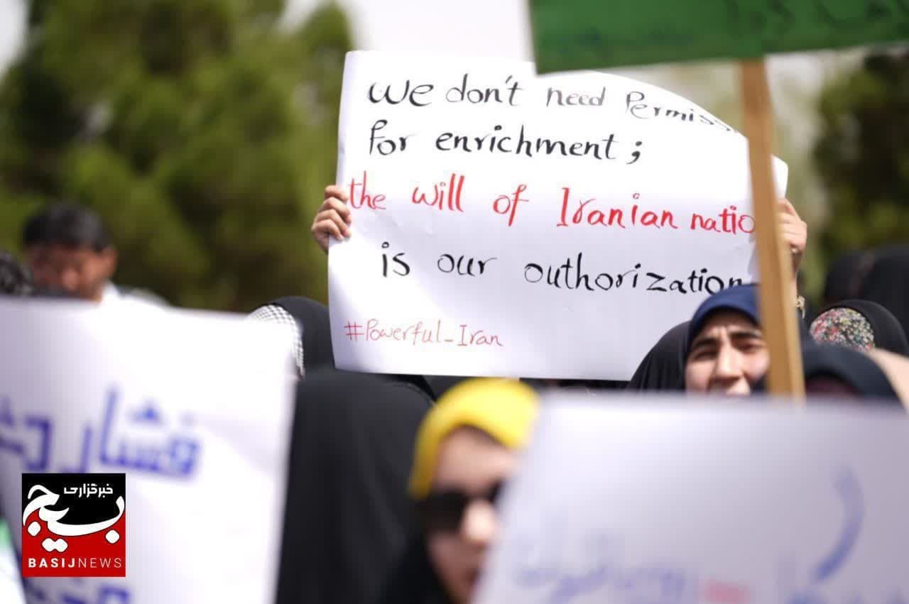 دانشجویان در این تجمع با پیروی از کلام ولی فقیه به این موضوع تاکید کردند که غنی سازی نه تنها یک فناوری بلکه نماد عزت جمهوری اسلامی ایران است.