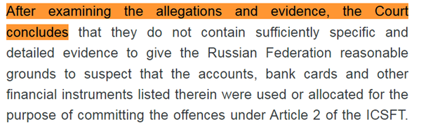 این در حالی است که طبق گزارش سال ۲۰۱۹ گروه ویژه اقدام مالی (FATF)، فدراسیون روسیه معمولاً ظرف یک تا دو ماه به درخواستهای همکاری حقوقی متقابل پاسخ میداد. از منظر دیوان، این تأخیر نهتنها نشانهای از کمکاری روسیه در اجرای تعهداتش بود، بلکه به معنای نقض هدف بنیادین کنوانسیون نیز تلقی میشد؛ هدفی که در مقدمه سند بهصراحت، تقویت همکاری بینالمللی برای مقابله با تأمین مالی تروریسم عنوان شده است.