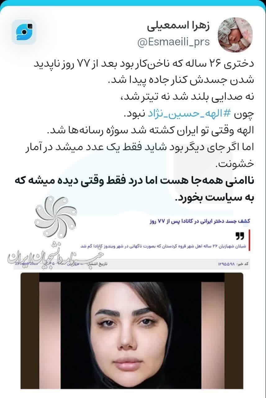 واکنش کاربران فضای مجازی به قتل الهه حسین نژاد؛