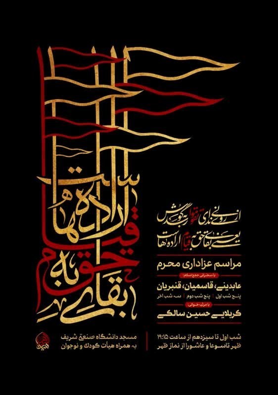 به گزارش «خبرنامه دانشجویان ایران» به نقل از تسنیم؛ مراسم سوگواری سید و سالار شهیدان حضرت اباعبدالله الحسین(ع) با حضور دانشجویان، اساتید و کارکنان دانشگاه صنعتی شریف، از شب اول تا سیزدهم محرم 1404 در مسجد این دانشگاه برگزار میشود و برای حضور عموم مردم نیز آزاد است.