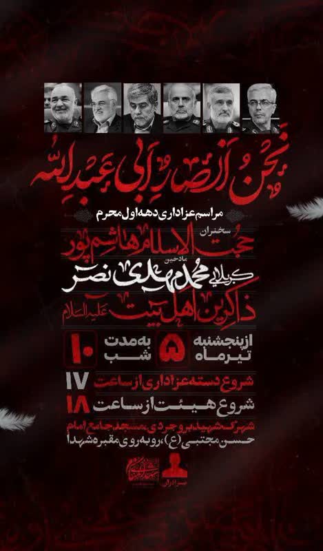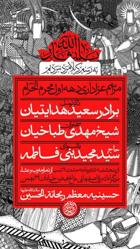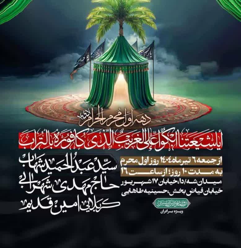 به گزارش «خبرنامه دانشجویان ایران»؛ همه ساله از اول محرم تا روز عاشورا پیراهن پاه پاره حضرت سیدالشهداء (ع) را از عرش خدا رو به زمین میآویزند و حزن و اندوه، دنیا را فرا میگیرد. گویی عاشورا دوباره برپا شده و تمام کفر مقابل حق و حقیقت ایستاده است. در ادامه پوستر مراسمهای عزاداری دهه اول محرم در تهران را مشاهده میکنید: