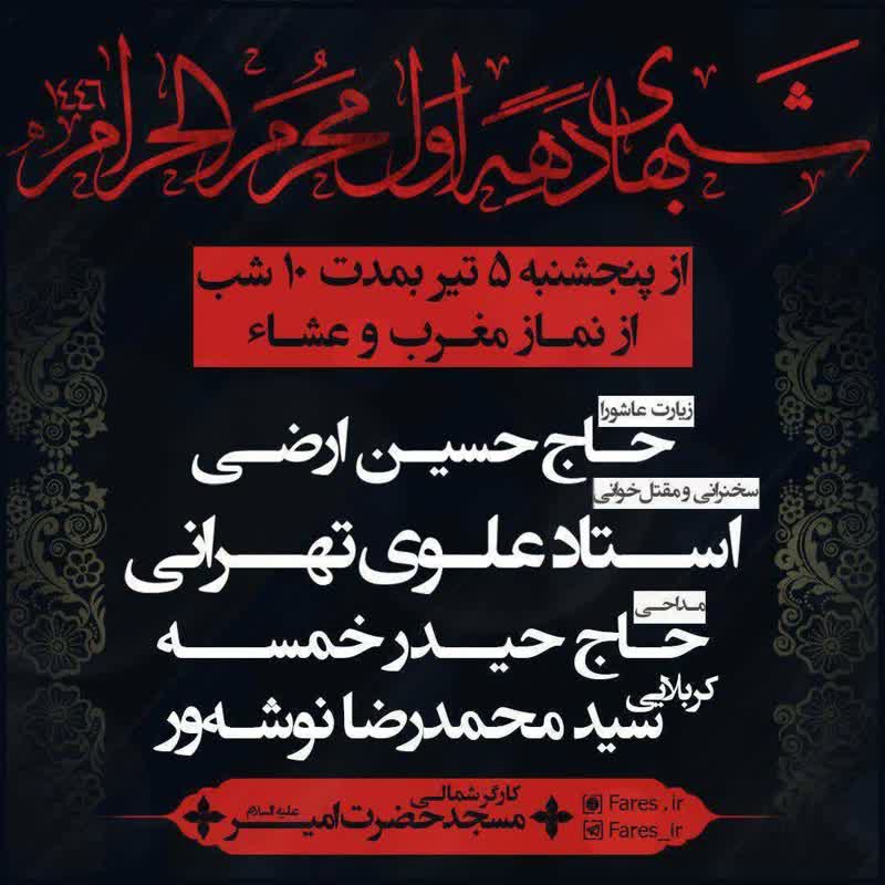 از شب اول محرم به مدت 9 شب ساعت 20:30