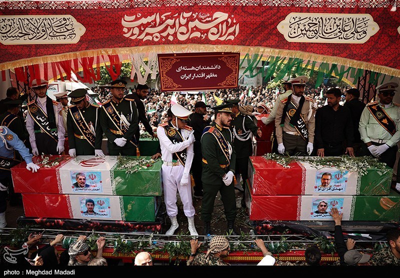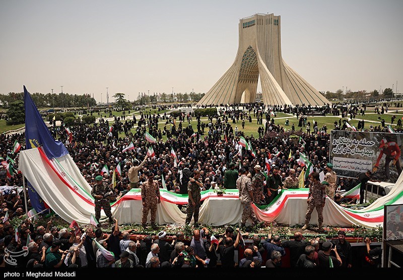 مراسم تشییع پیکر فرماندهان نظامی و دانشمندان کشورمان، که در پی تجاوز اخیر رژیم صهیونیستی به کشورمان به شهادت رسیدند صبح روز شنبه ۷ تیر ۱۴۰۴ با حضور اقشار مختلف مردم در تهران برگزار شد.