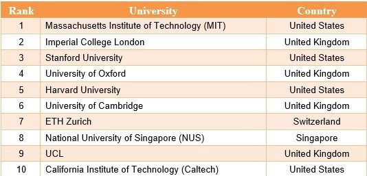 دانشگاه تهران با رتبه 322 دانشگاه اول ایران است و دانشگاههای صنعتی شریف با رتبه 375، صنعتی امیرکبیر با رتبه 456، علم و صنعت ایران با رتبه 496 و صنعتی اصفهان با رتبه 571 به ترتیب رتبه اول تا پنجم ایران را کسب کردهاند.