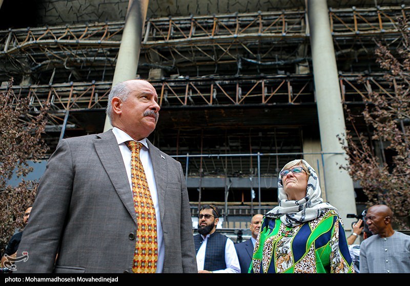 سفیران حدود ۳۰ کشور جهان با حضور در سازمان صداوسیما از ساختمان شیشهای این سازمان که اخیراً هدف حمله قرار گرفته بود، بازدید کردند. جبلی در جمع این سفرا هم به ماجرای ۱۱ بمب اصابتکرده اشاره کرد و هم ساختمانی که بازسازیاش در دستور کار است.