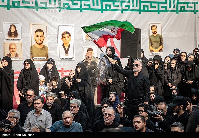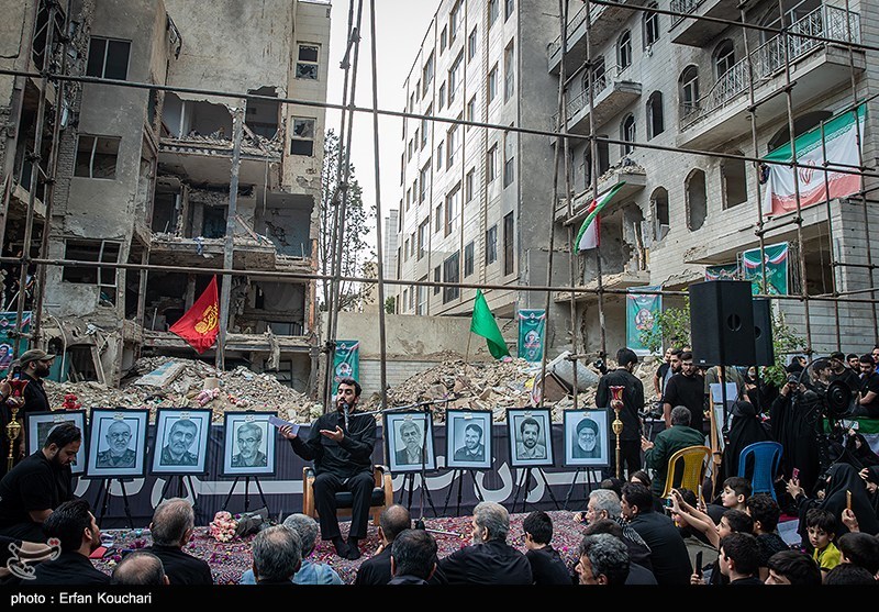 مراسم عزاداری برای ۱۸ شهید حملات رژیم صهیونیستی در محله نارمک در محل شهادت شهید ساداتی با حضور عموم مردم برگزار شد.