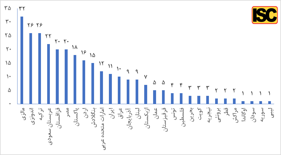 تعداد دانشگاه های کشورهای اسلامی در این رتبه بندی در نمودار زیر قابل مشاهده است: