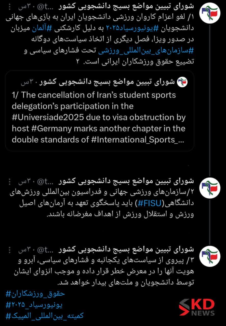 موضع شورای تبیین مواضع بسیج دانشجویی کشور در واکنش به سیاستهای دوگانه سازمانهای بین المللی ورزشی و لغو اعزام کاروان ورزشی دانشجویان ایران