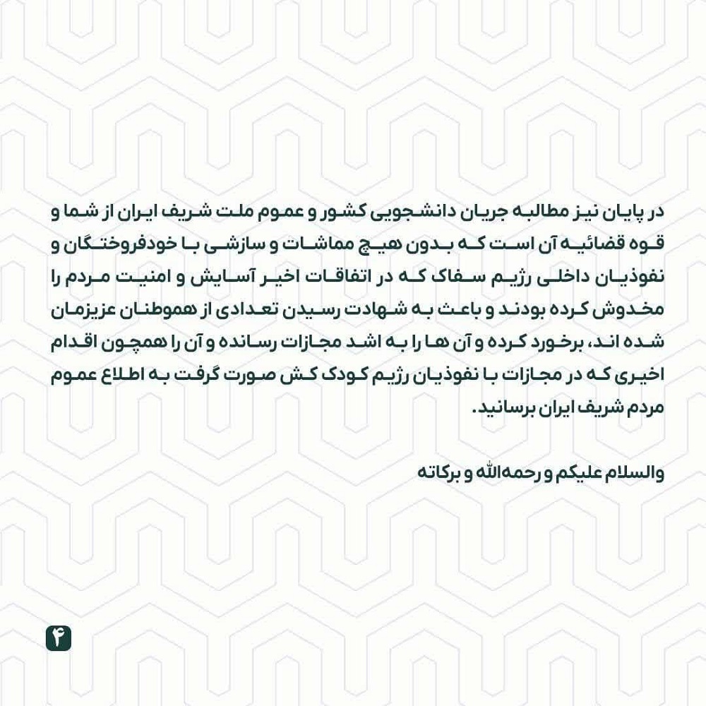 قسمتی از متن نامه به شرح زیر است: